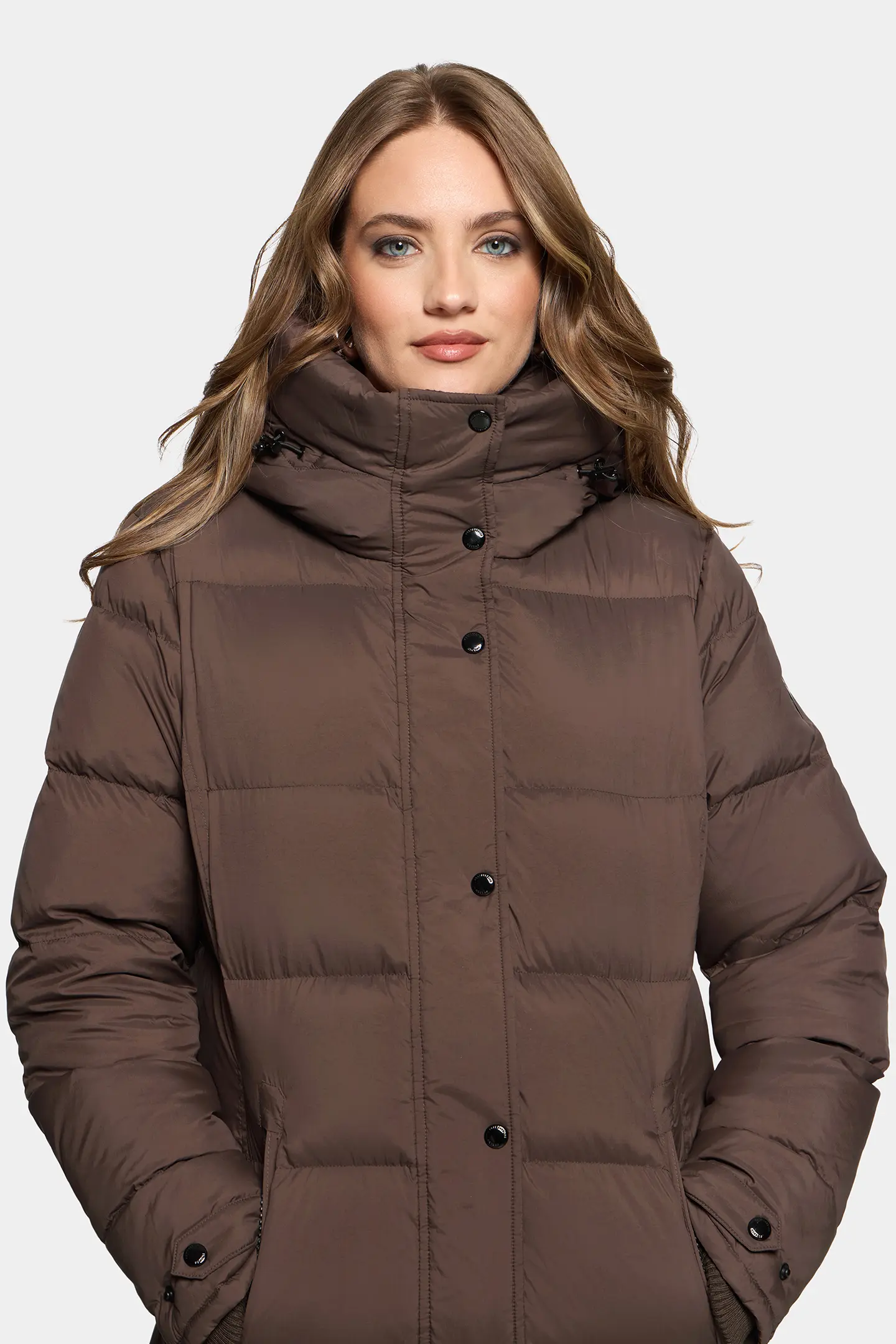 Denne dunjakke er en sand favorit, da den er både moderig, flatterende og komfortabel.