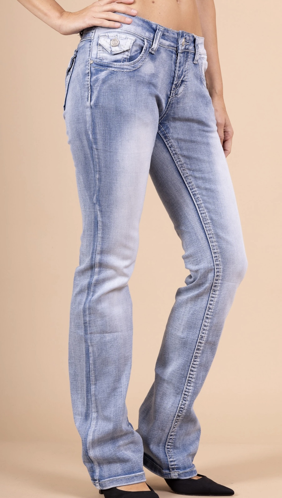 Oplev vores lavtaljet, smukke denim buks, prydet med de fineste detaljer og sten. Gør din garderobe unik og trendy – invester i stil og komfort i dag!
