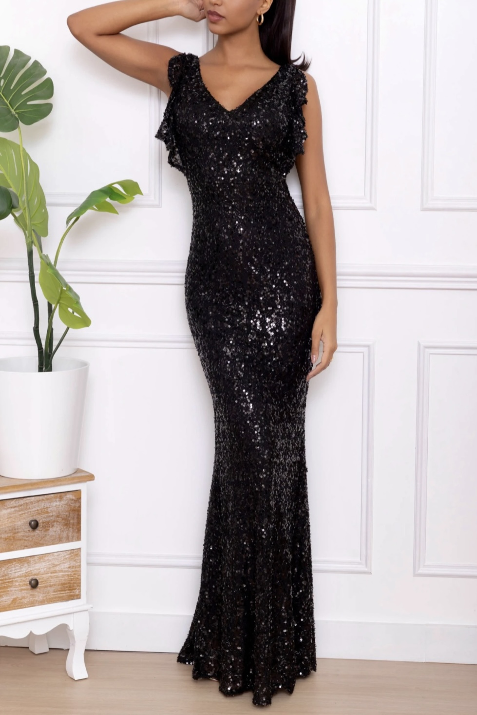 Smukkeste mermaid shape dress med palietter. Tætsiddende, almindelig i størrelsen og vaskes på 30 grader skåneprogram.