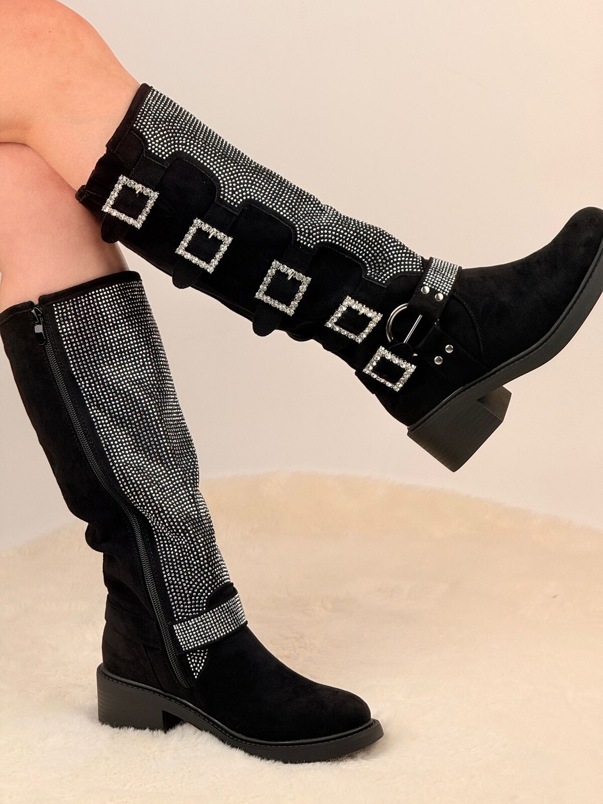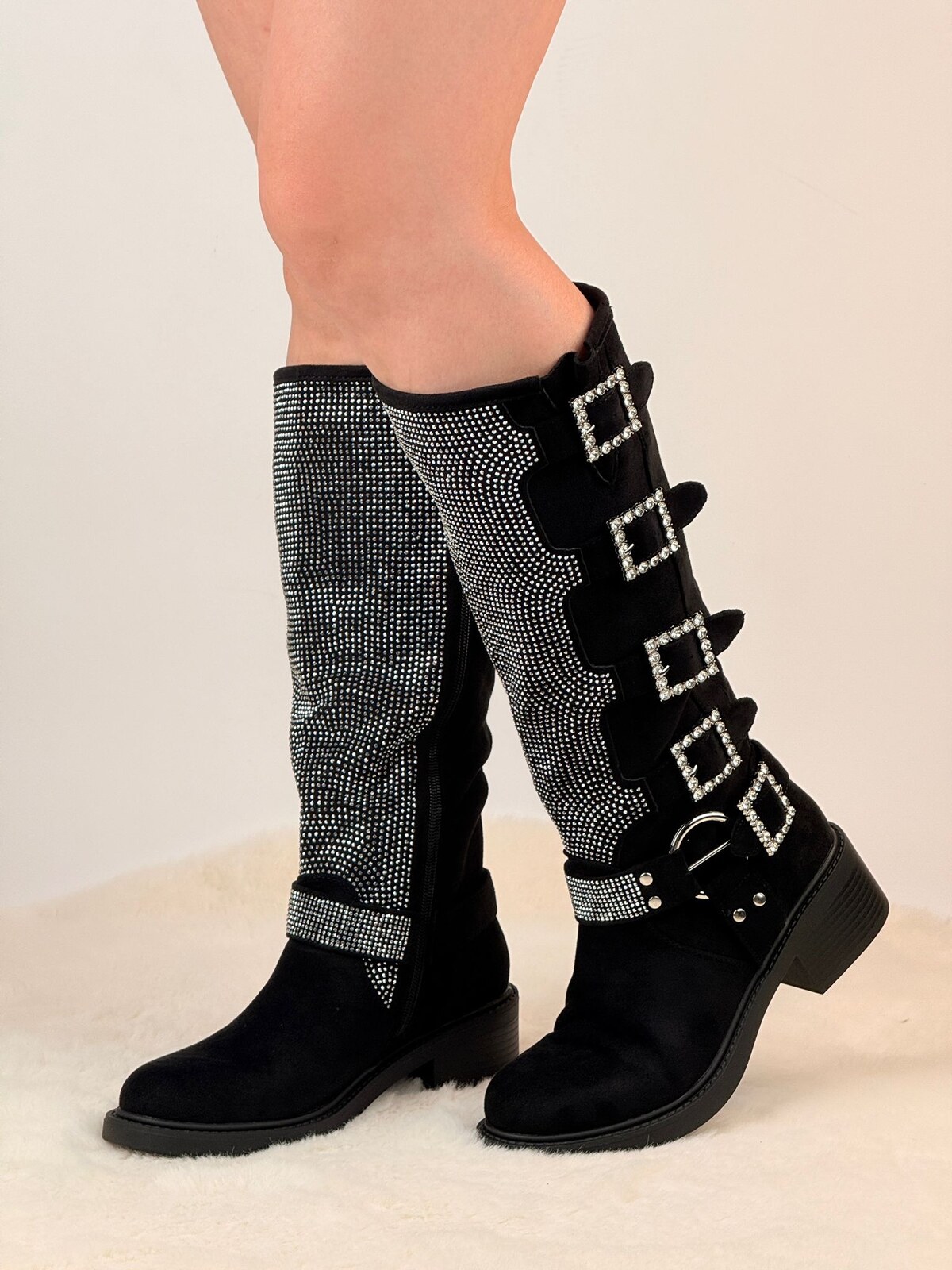 Paris støvle med bælte og sten, lynlås i siden, komfortable og pæne støvler, passer til ethvert outfit.