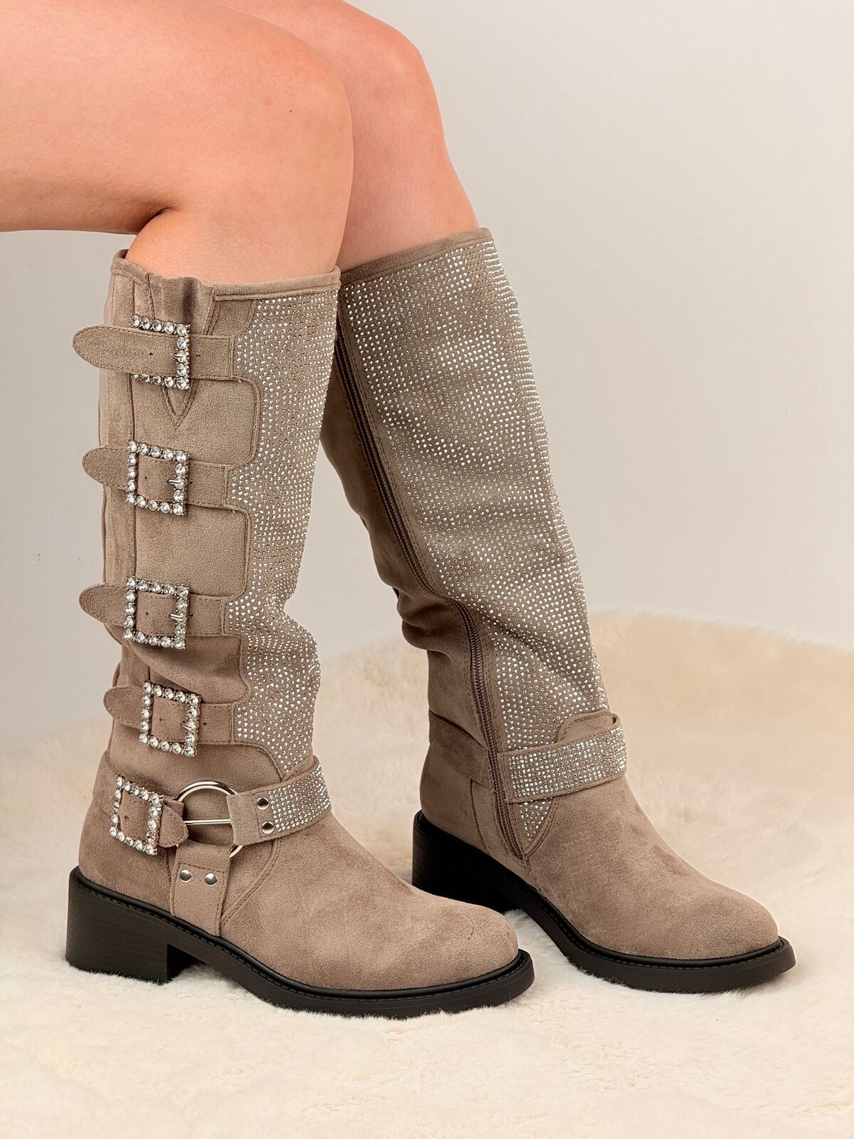Paris støvle med bælte og sten, lynlås i siden, komfortable og pæne støvler, passer til ethvert outfit.