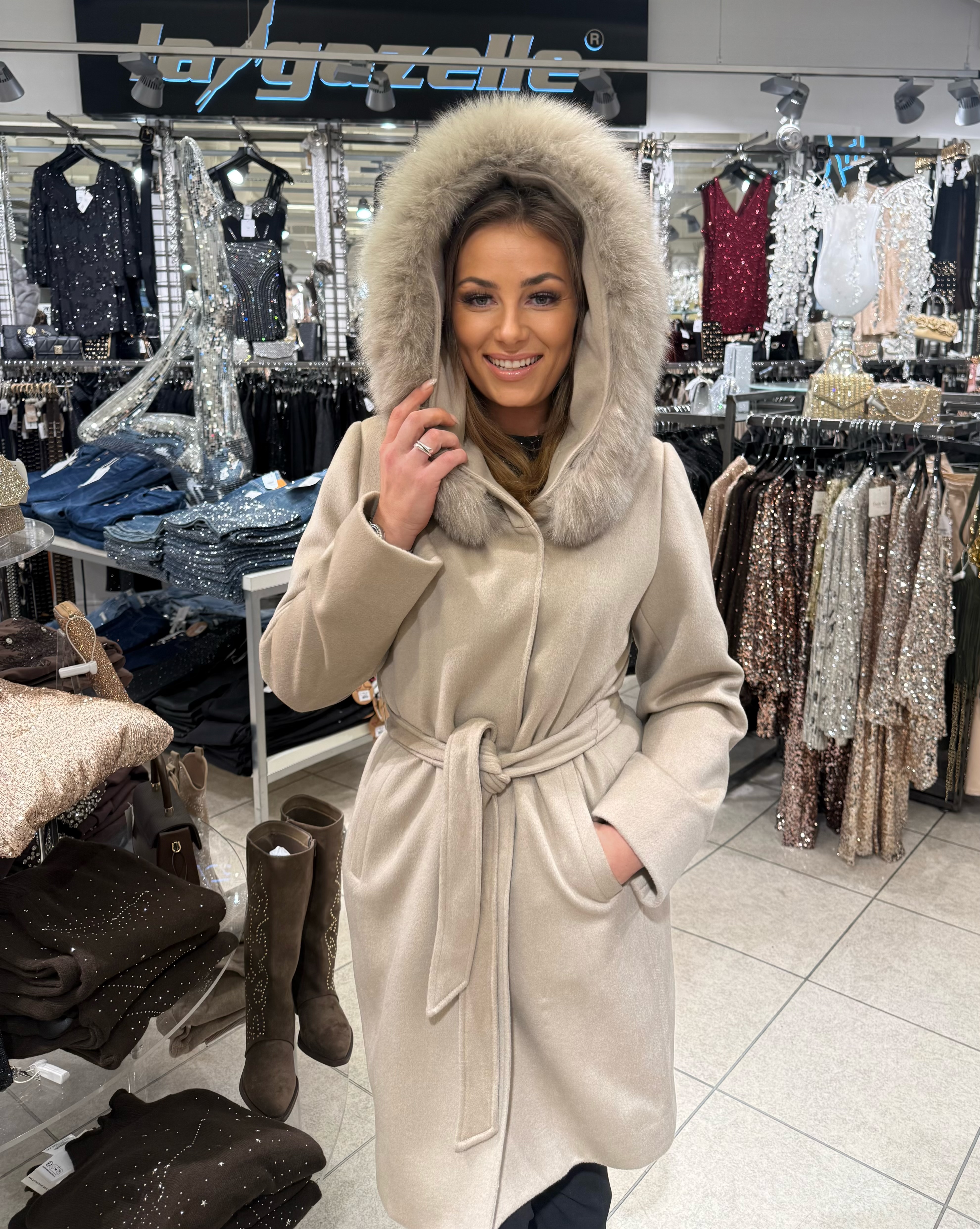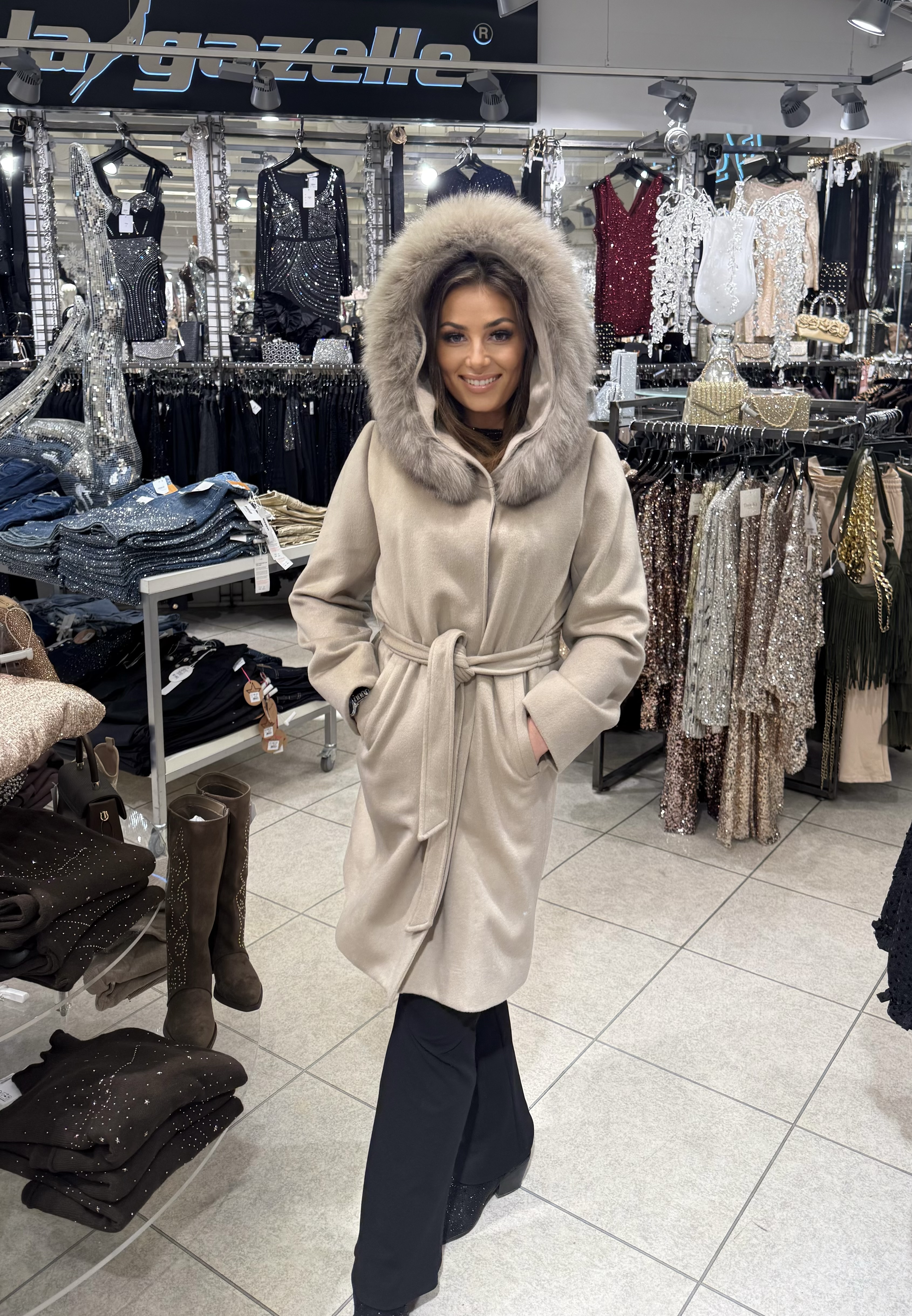 WOOL HOOD FOX FUR GC-Y008-SAND